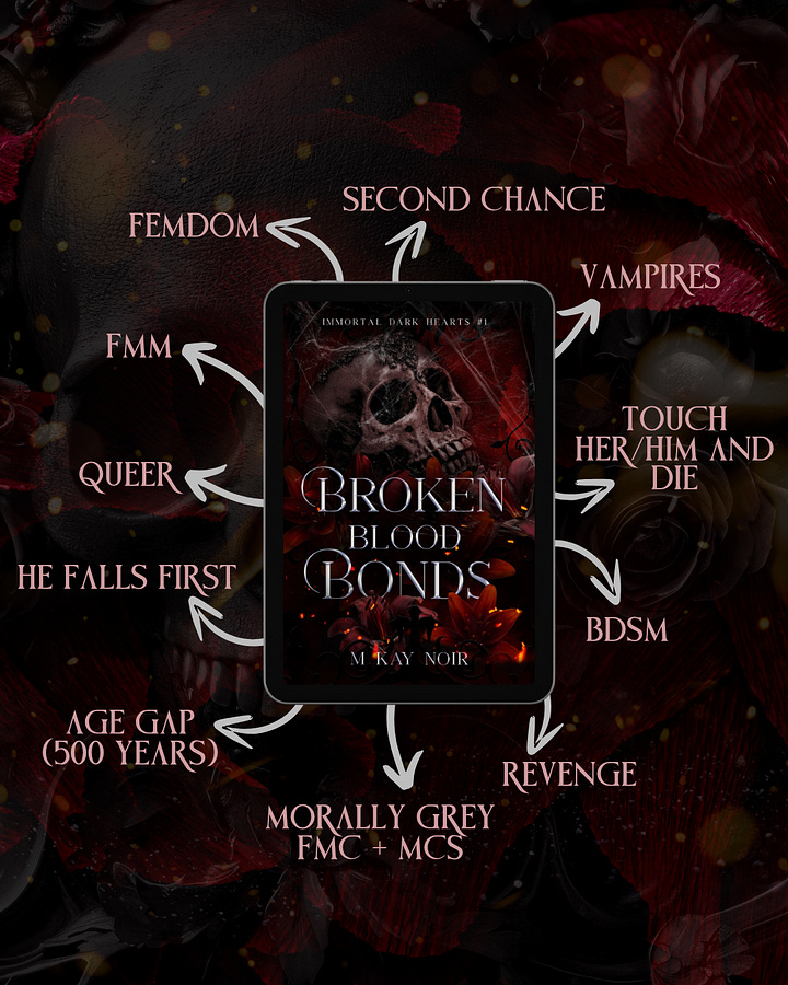 Get an early, exclusive look at Broken Blood Bonds, a dark, seductive vampire romance where blood, magic, and desire collide. ARC signups are officially open for M Kay Noir’s newest release.